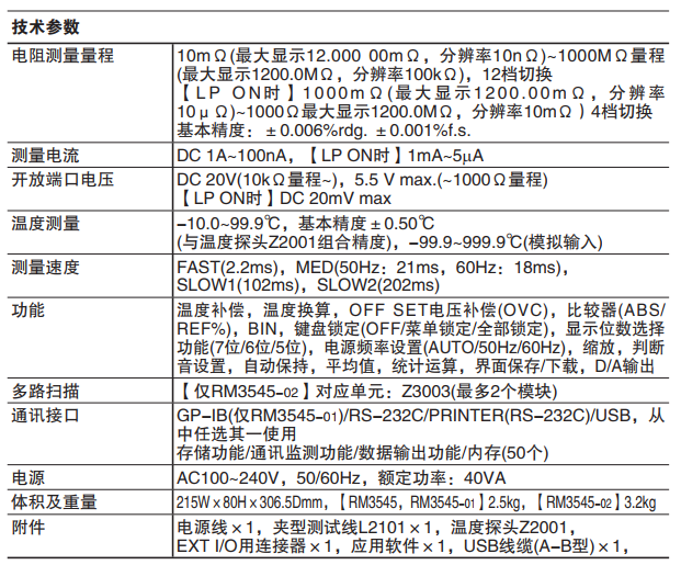 ● 開路端口電壓20mV以下的低功率電阻測(cè)量