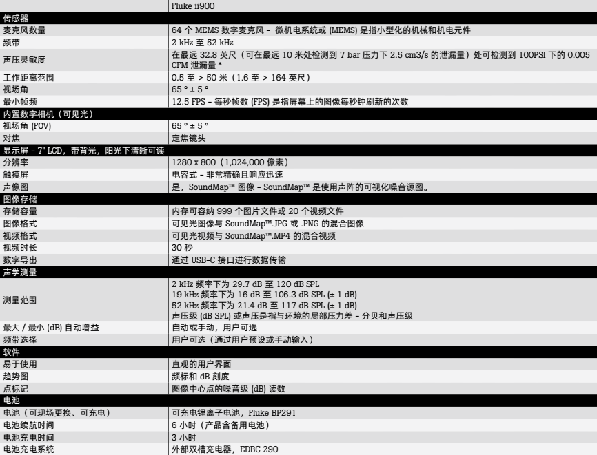 手持式 Fluke ii900 工業(yè)聲學成像儀配備了一系列麥克風以擴大檢查范圍,使維護團隊能夠快速準確地定位壓縮空氣系統(tǒng)中的空氣、氣體和真空泄漏,即使在嘈雜的環(huán)境中也是如此。新的 SoundSight 技術專為在嘈雜的生產設施中使用而設計,易于學習和實施。在 7 英寸 LCD 觸摸屏上,SoundMap 與可見光圖像重疊,以幫助快速找到泄漏位置。簡單直觀的界面使技術人員能夠辨識泄漏的聲頻,從而過濾掉較大的背景噪音。技術團隊在操作高峰期間檢查完整個設備只需數小時。您可以快速輕松地確定需要開展的空氣泄漏維修工作,以確保高效操作并降低能源成本——這實屬首創(chuàng)。可以保存和導出圖像以用于報告目的。切勿讓漏氣處于無人照管的狀態(tài)。