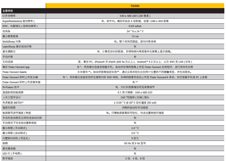 產(chǎn)品概述: Fluke TiX580 紅外熱像儀