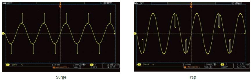 IT-M7700系列提供突波/陷波的模擬功能,用戶可以根據(jù)需求在輸出正弦波的基礎(chǔ)上加上突波/陷波來模擬電路系統(tǒng)中電壓的異常波動,從而測試待測物在此種環(huán)境下的使用情況。