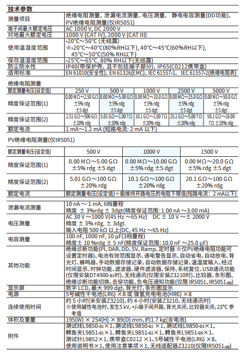 配備PV專用量程的Max. 5 kV的高壓絕緣電阻測(cè)量