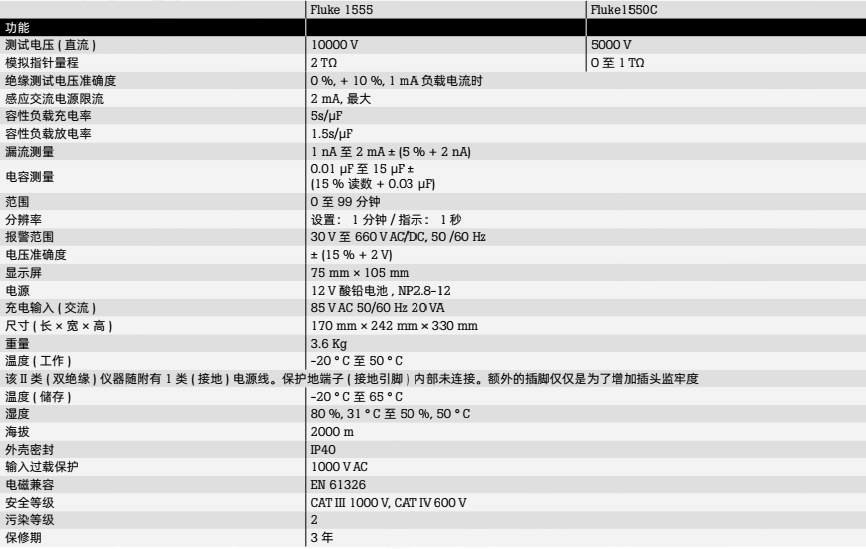 Fluke 1550C/1550C FC絕緣電阻測試儀包括: