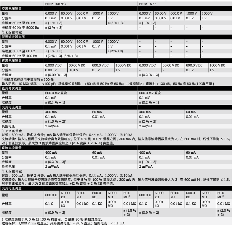 Fluke 1587FC 和 1577包括: