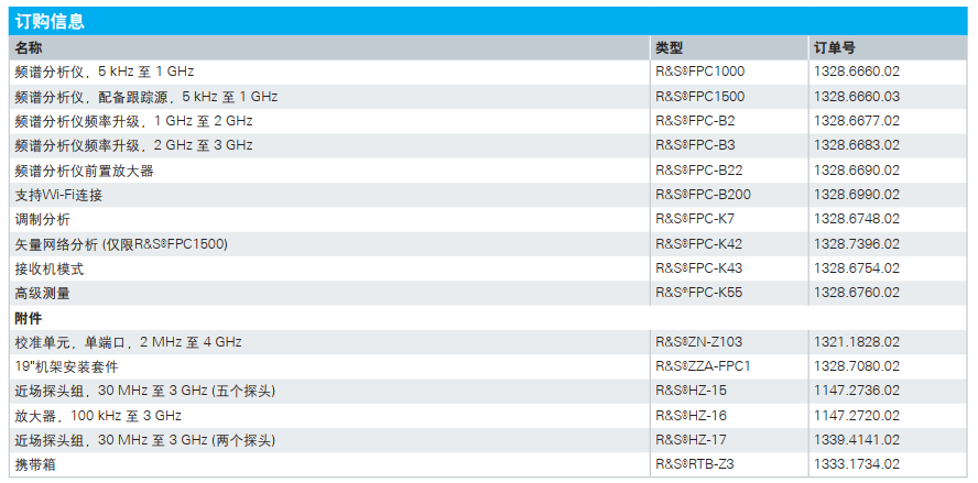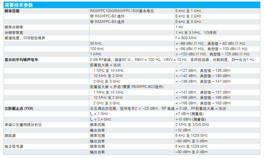 ● 頻率范圍: 5 KHz~1 GHz/2 GHz/3 GHz, 可選FPC1000無跟蹤源和FPC1500帶跟蹤源兩種版本