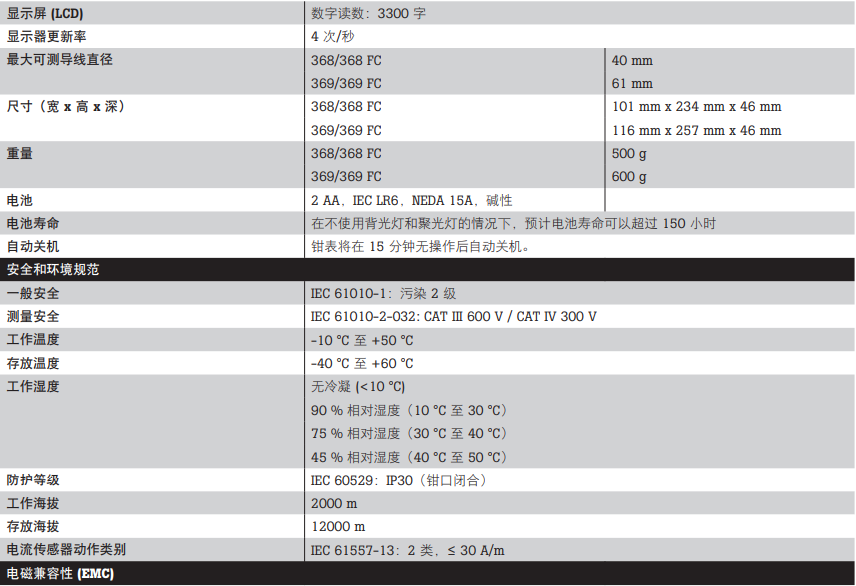 *除FC及相關(guān)功能外,369 具有與 369 FC相同的電氣性能與測量功能