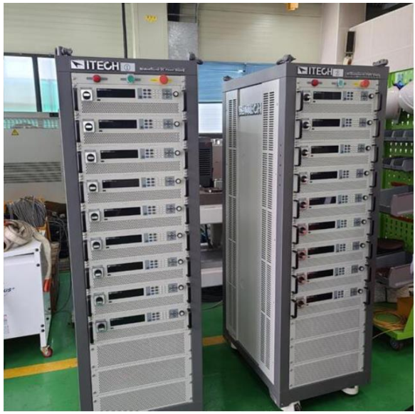 針對高壓蓄電池的模擬,IT6000C系列電源可提供高達(dá)2250V的電壓等級。某客戶選用1500V機(jī)型,搭建成324kW的系統(tǒng)進(jìn)行測試,如下所示: