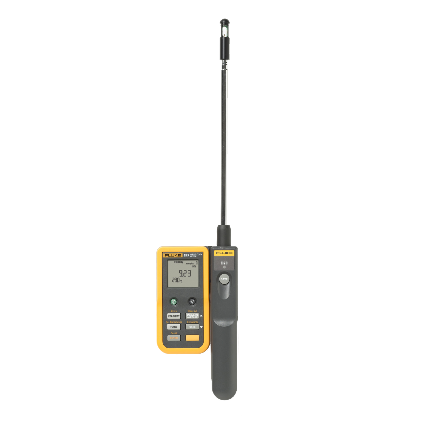 Fluke 923 熱線風(fēng)速儀是一款可以分離顯示屏的風(fēng)速計,顯示屏和傳感器一體時采用紅外通訊方式,當(dāng)分離時采用無線通訊方式;顯示屏最遠可以距離傳感器30m仍可以準(zhǔn)確讀數(shù),不會影響數(shù)據(jù)的實時性和測量精度。熱敏風(fēng)速傳感器探桿可伸縮,傳感器上的保存按鈕方便隨時保存測量數(shù)據(jù),支持保存數(shù)據(jù)的平均值運算;只要輸入風(fēng)管的尺寸,便可直接顯示風(fēng)量;可以設(shè)定風(fēng)速報警值,達到報警界限后蜂鳴震動報警;為了更準(zhǔn)確的測量,儀表還支持大氣壓的輸入。