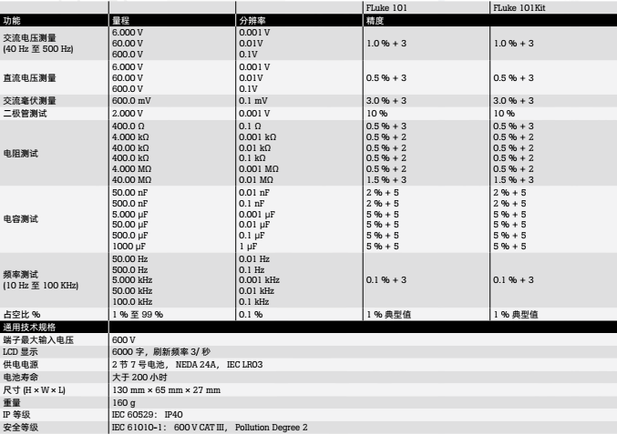 型號(hào): Fluke 101/101Kit 數(shù)字萬(wàn)用表包括: