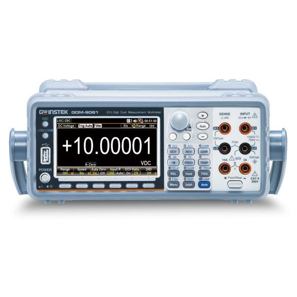 固緯電子推出- GDM-906X系列(共2個(gè)機(jī)型~ GDM-9061和GDM-9060),6 ?位雙測量數(shù)字電表,具有高精度直流電流測量、快速采樣率、12項(xiàng)測量項(xiàng)目(直流電壓/電流、交流電壓/電流、2線/4線制電阻、頻率、周期、二極管、短路蜂鳴、溫度、電容)、6項(xiàng)運(yùn)算功能(dB/dBm/Compare/MX+B/Percent及1/X)、以及豐富的通訊接口(USBdevice/host、RS-232C、LAN、數(shù)字I/O和GPIB選購),提供全方位的測量能力,以及更高的速度和準(zhǔn)確性。該系列采用4.3寸TFT圖形化顯示屏,以及快速的采樣率(GDM-9061:10k/s、GDM-9060:1k/s max.)除了可用傳統(tǒng)的數(shù)字顯示外,還可以用條狀圖、趨勢圖或直方圖來搭配顯示,讓整個(gè)測量過程,更直觀、迅速地被完整呈現(xiàn)。同時(shí),更大的內(nèi)存(GDM-9061:100k、GDM-9060:10k),也能協(xié)助趨勢圖或直方圖在測量過程時(shí),進(jìn)行統(tǒng)計(jì)計(jì)算,簡化繁瑣的趨勢分析。在使用的便利性上,GDM-906X系列也加入了豐富的操作設(shè)計(jì),例如數(shù)字按鍵,便于需要數(shù)值輸入的設(shè)置,如上/下限值、LAN IP…等;操作接口或信息,支持多國語言(英文/繁體/簡體/日語/韓語),有助于縮短電表的操作學(xué)習(xí)。對(duì)于自動(dòng)測試系統(tǒng)測量或遠(yuǎn)程控制應(yīng)用,GDM-906X除了提供USB,RS-232C和LAN作為標(biāo)準(zhǔn)通訊接口外,還可選擇GPIB(客戶安裝選項(xiàng))。在軟件支持方面,GDM-906X系列提供DMM-Viewer2,來協(xié)助用戶觀測或記錄測量的數(shù)據(jù);另外,也提供LabVIEW driver以利不同系統(tǒng)整合上的程序需求。