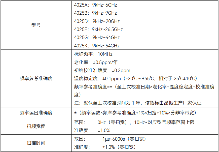 ≤-163dBm/Hz(2MHz~2GHz, 前置放大器開(kāi), 4025E/G/K 典型值)