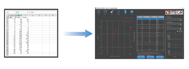 ● 支持.csv文件導(dǎo)入功能,最多可導(dǎo)入4096點(I-V)數(shù)據(jù)